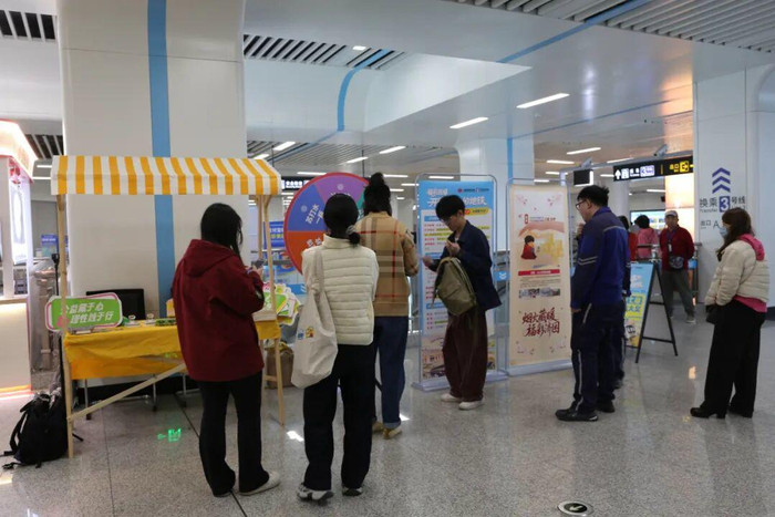 周六,奥体中心站打卡点则变成了一个青春洋溢的大舞台。“青春畅行”艺术快闪活动在这里火热开演,来自高校艺术团和青春畅行服务队的年轻人带来了动听的歌曲和优美的舞蹈表演,引得过往乘客纷纷驻足围观。现场还设置了地铁及福彩公益知识问答环节,乘客们踊跃举手抢答,答对题目即可获得专属盖章打卡。一位参与问答的大学生笑着说:“坐个地铁还能看演出、长知识、集印章,这样的体验太棒了!”两场活动一静一动,既丰富了乘客的出行体验,也将地铁文化与公益理念润物无声地传递给了更多人。