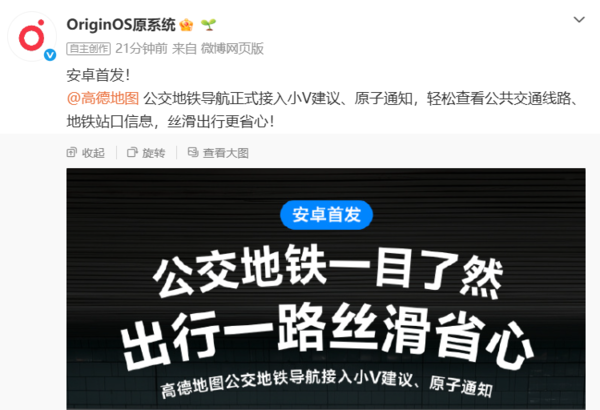本次功能升级的另一大亮点是地铁站口信息的清晰呈现。用户在规划地铁出行路线后,原子通知和小V建议将主动推送推荐出入口信息,帮助乘客在复杂的地下交通枢纽中快速找到正确的方向,减少站内徘徊的时间。结合高德地图的实时公交地铁数据与OriginOS系统的AI识别能力,这一功能将大幅提升高峰时段通勤的效率和体验。