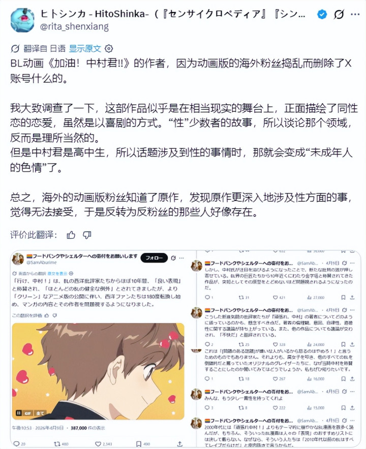 其实在此前《加油吧!中村同学!!》在欧美其实一直是“例外”,很多人评价这是少见的健康BL,很温柔的青春恋爱。