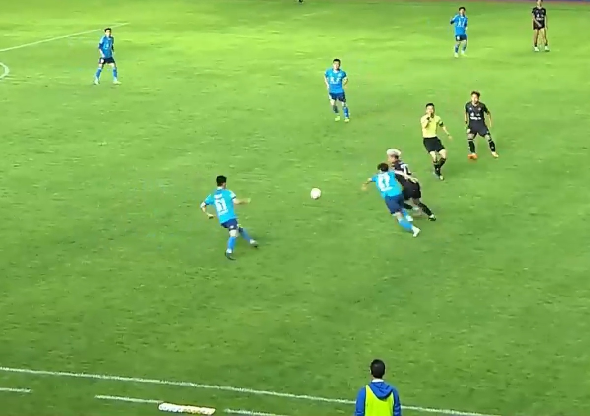 当比赛进行到27分钟时,宜宾队51号杜振宇率先进1球,上半场宜宾队1:0领先凉山队。
